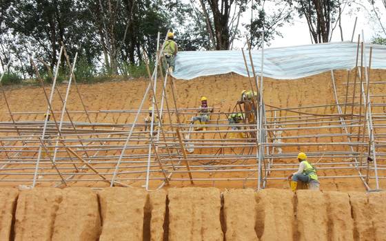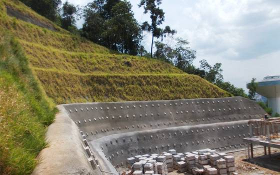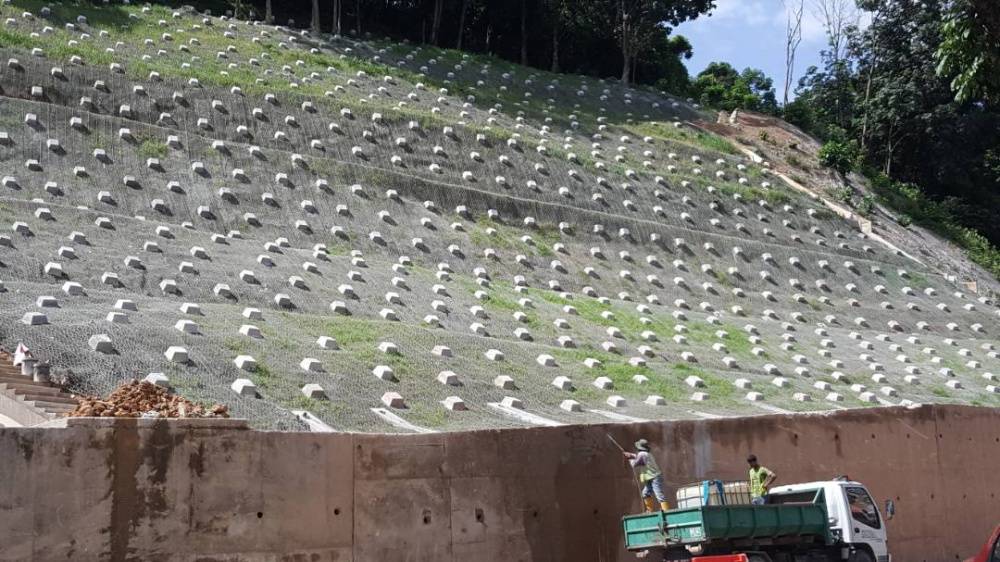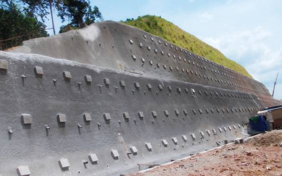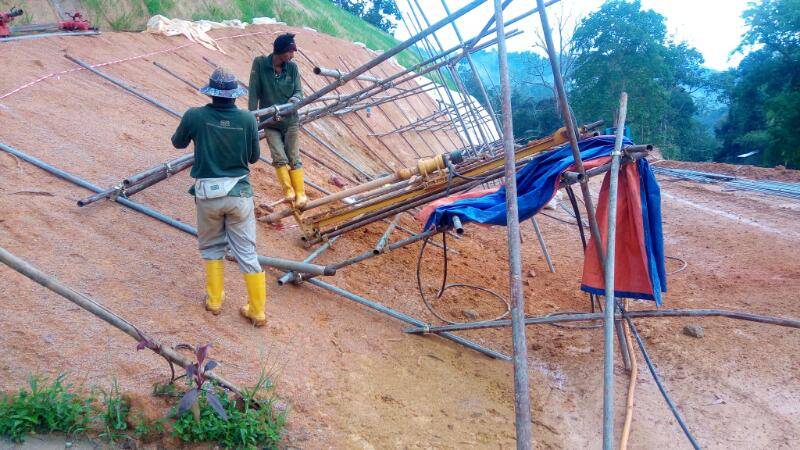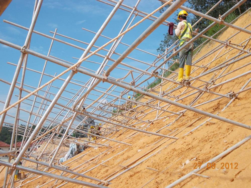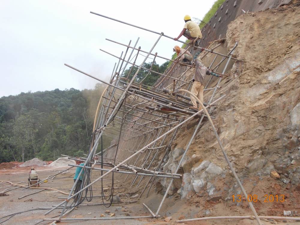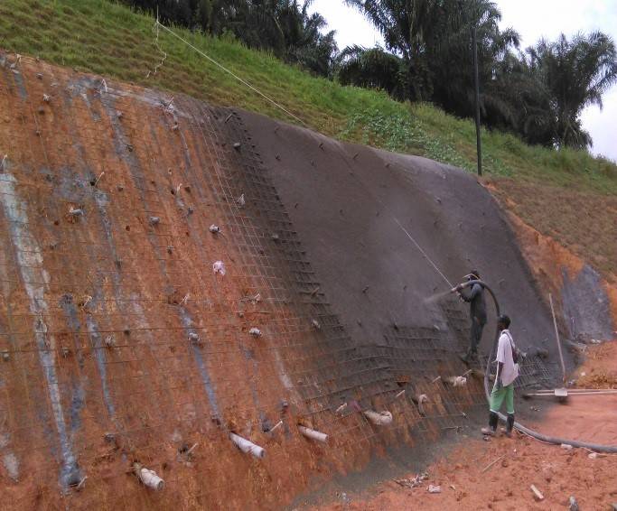 Soil nailing is increasingly being used in Malaysia, for distressed and very steep cut slopes, even up to 25 metres high. This method has a distinct advantage of strengthening the slope without excessive earthworks associated with reinforced concrete wall and reinforced soil wall.