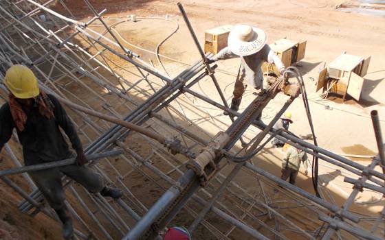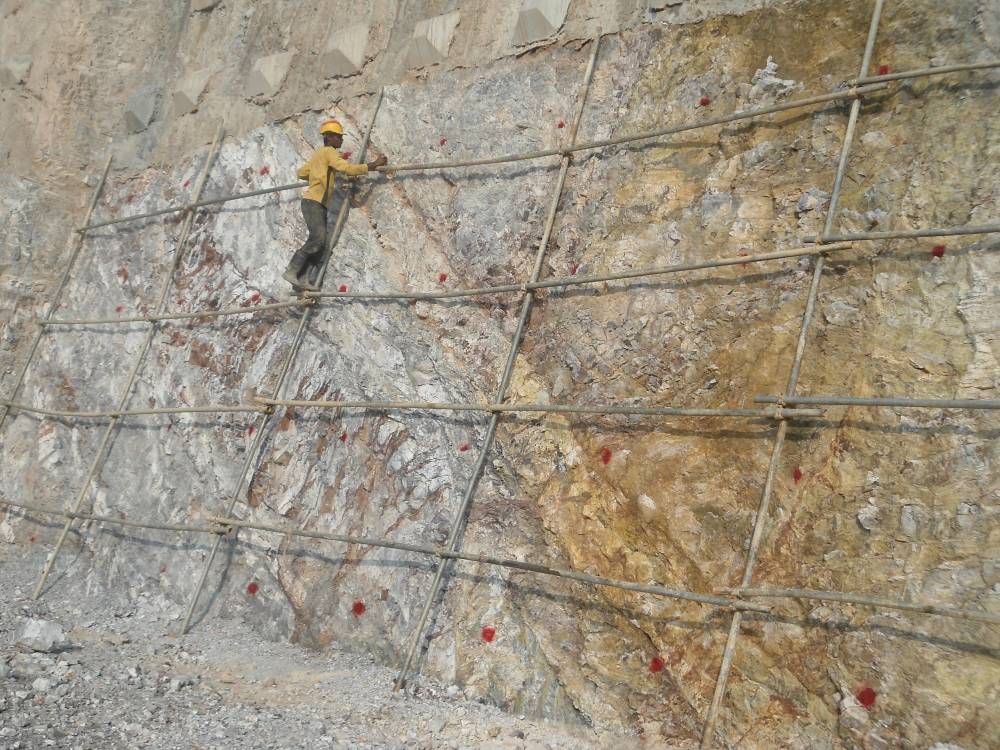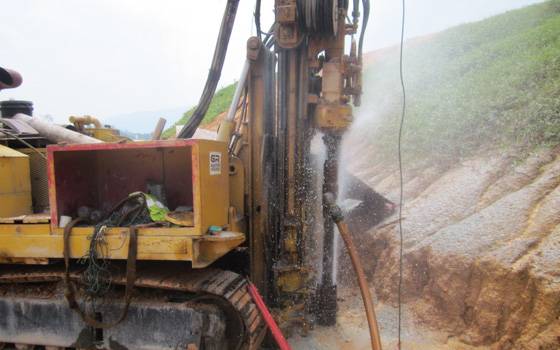 • Installation of steel reinforcing bars (soil nails)